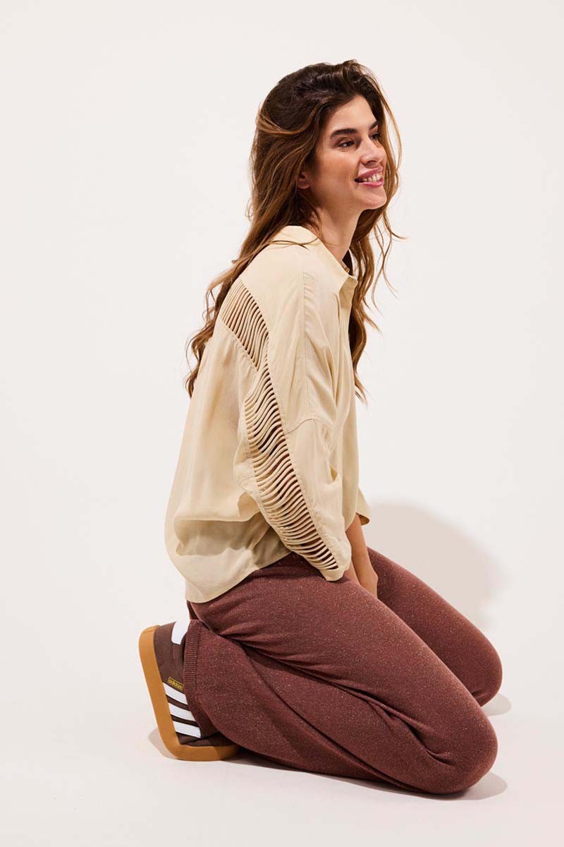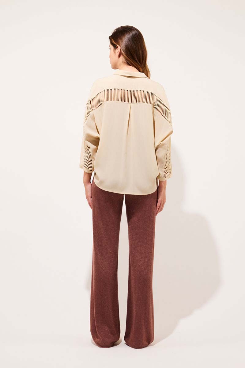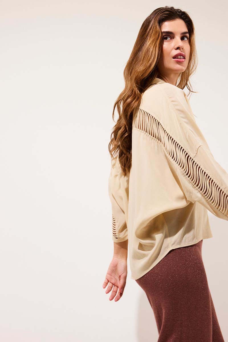 La chemise CLARA est l’une de ces pièces essentielles que l’on retrouve, que l’on garde, et que l’on porte différemment selon l’instant. Sa coupe loose, aux épaules tombantes, crée une silhouette fluide et naturelle, idéale quand la chaleur s’installe. Confectionnée dans une matière douce et souple, elle accompagne le mouvement du corps avec légèreté. Les manches 3/4 dégagent le poignet, tandis que la patte de boutonnage dissimulée épure la ligne. Le détail ajouré dans le dos et sur les manches insuffle une sensualité discrète, signature de Karma Koma. Une chemise que l’on porte rentrée ou flottante, en journée comme en fin d’après-midi, toujours avec cette élégance nonchalante propre à l’été.