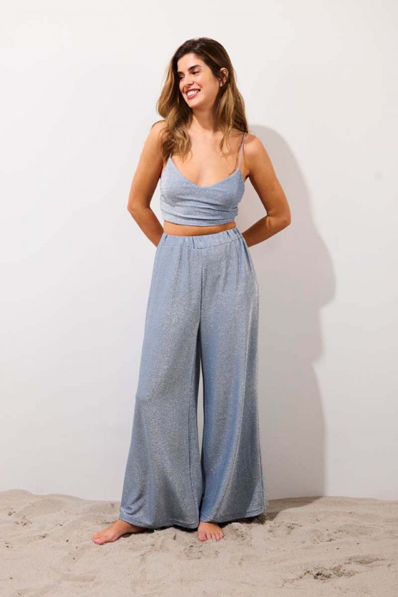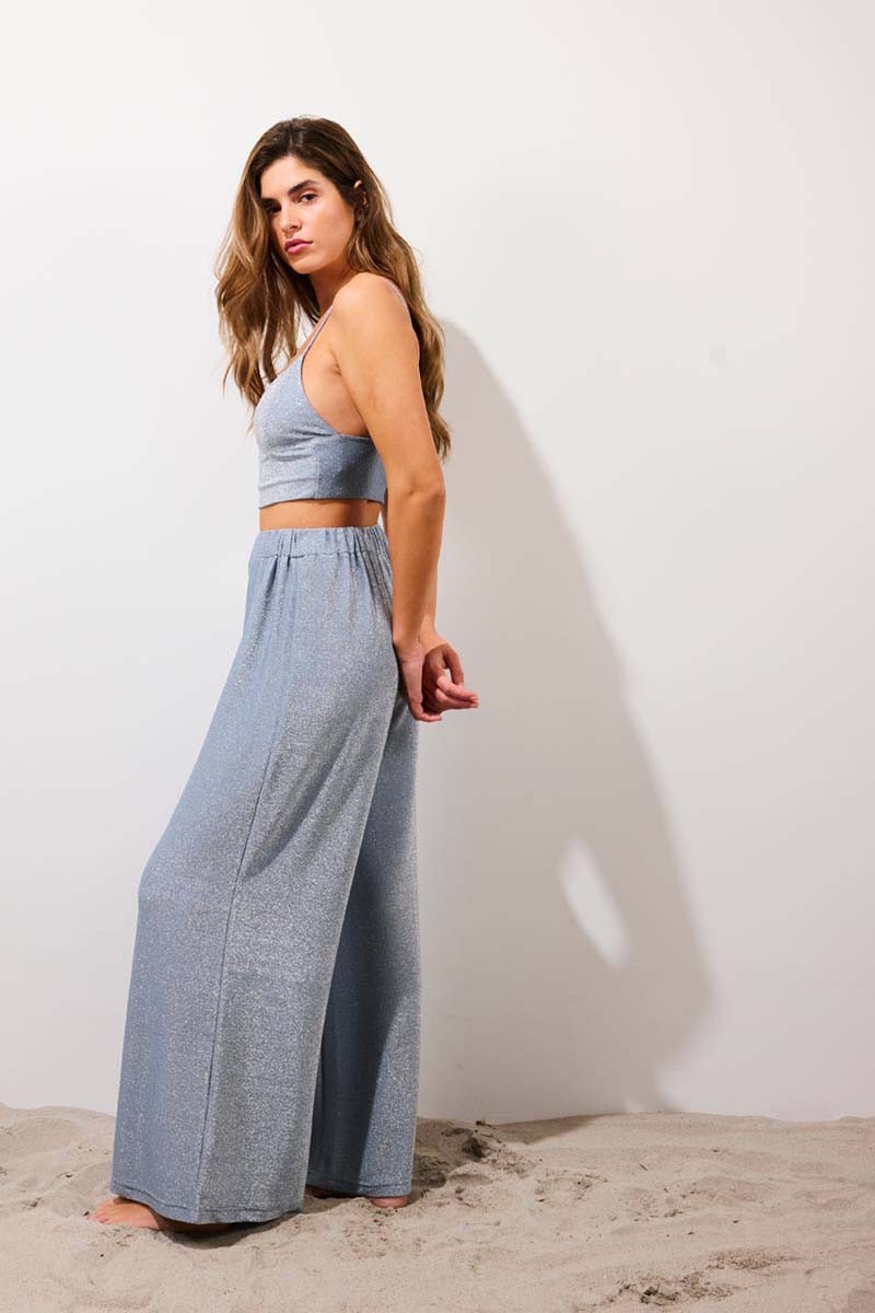 Modèle iconique de la marque, le pantalon DISCO est confectionné dans une matière fluide irisée, qui capte la lumière à chaque mouvement. Sa taille élastiquée assure un confort parfait, tandis que sa coupe longue et fluide allonge la silhouette. Pensé comme une pièce forte du vestiaire, il se porte aussi bien en journée décontractée qu’en version soirée. À associer au top ROBERTO en maille irisée pour une silhouette pop et assumée.