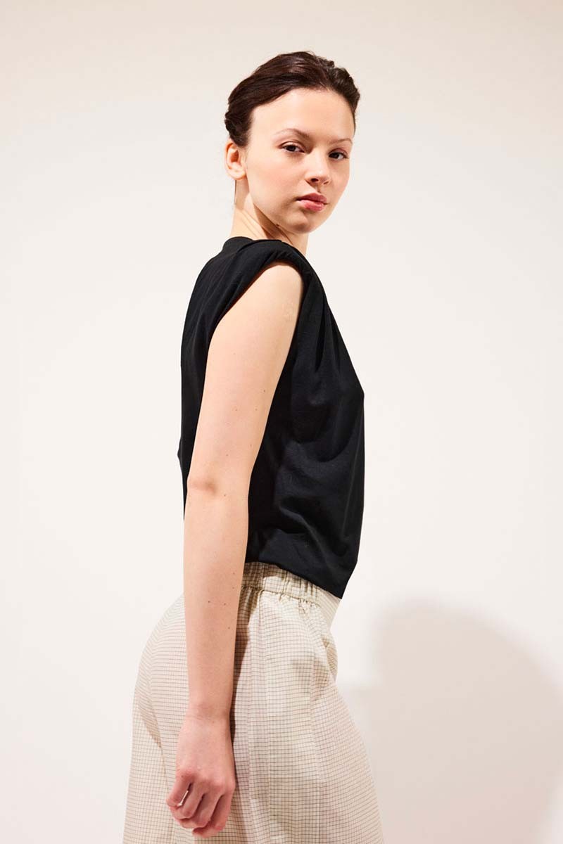 "Je voulais un top simple, agréable, qu’on enfile sans réfléchir. Une pièce qui laisse le corps respirer et accompagne les gestes du quotidien. Une évidence du vestiaire d’été."