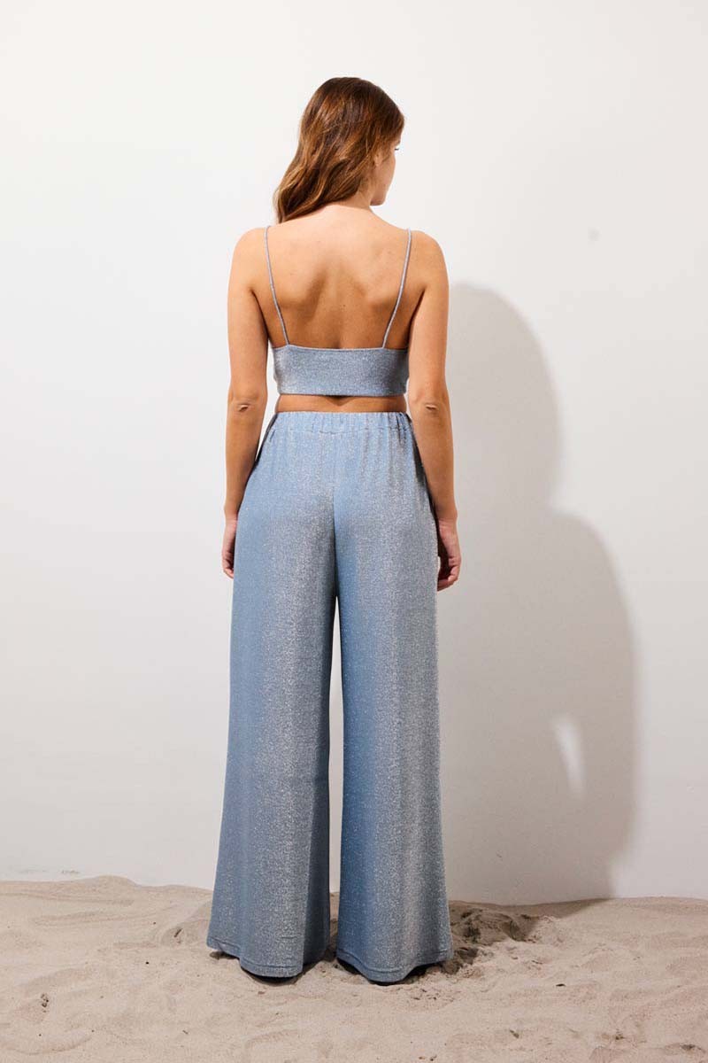 Le top ROBERTO est une brassière à fines bretelles, conçu dans une maille extensible et scintillante. Sa coupe courte épouse les formes et attire la lumière dès le premier regard. À associer au pantalon DISCO pour une silhouette pop et assumée.