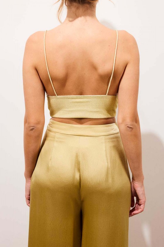 Le top ROBERTO est une brassière à fines bretelles, conçu dans une maille extensible et scintillante. Sa coupe courte épouse les formes et attire la lumière dès le premier regard. À associer au pantalon DISCO pour une silhouette pop et assumée.