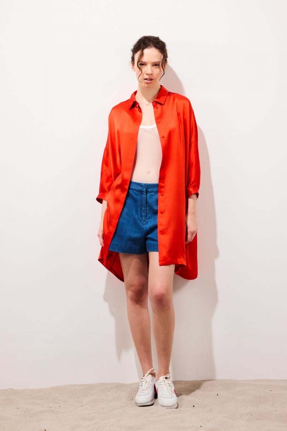 "La MANON, c’est une pièce qui nous accompagne depuis longtemps. J’aimais l’idée de la faire évoluer en robe, sans trahir son ADN : une robe chemise ample, facile, presque instinctive."